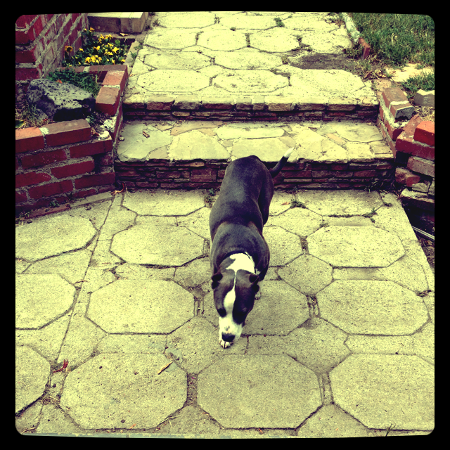 Unfortunately this is when I learned that my younger dog would not accept any new family members. I must have gone terribly wrong somewhere because although he has always been sweet and friendly with all people and animals we've encountered before and since, for me to escort another animal into the house is forbidden and met with crazy gorilla behavior that I find utterly unbelievable. Sadly, I put my dog back inside and took the street dog down to my local pet store to ask about local rescues. There are so many active in my area that I thought surely someone would be connected, willing and able to help me find a place for this poor dog to stay but their best advice was to take him to the shelter and I felt that was simply not an option. So I sat down outside not knowing what to do. I literally did not have a thought in my head. I couldn't go home and I didn't know where else to go. My only hope at that point was that someone passing by might stop and have some better advice for me.
